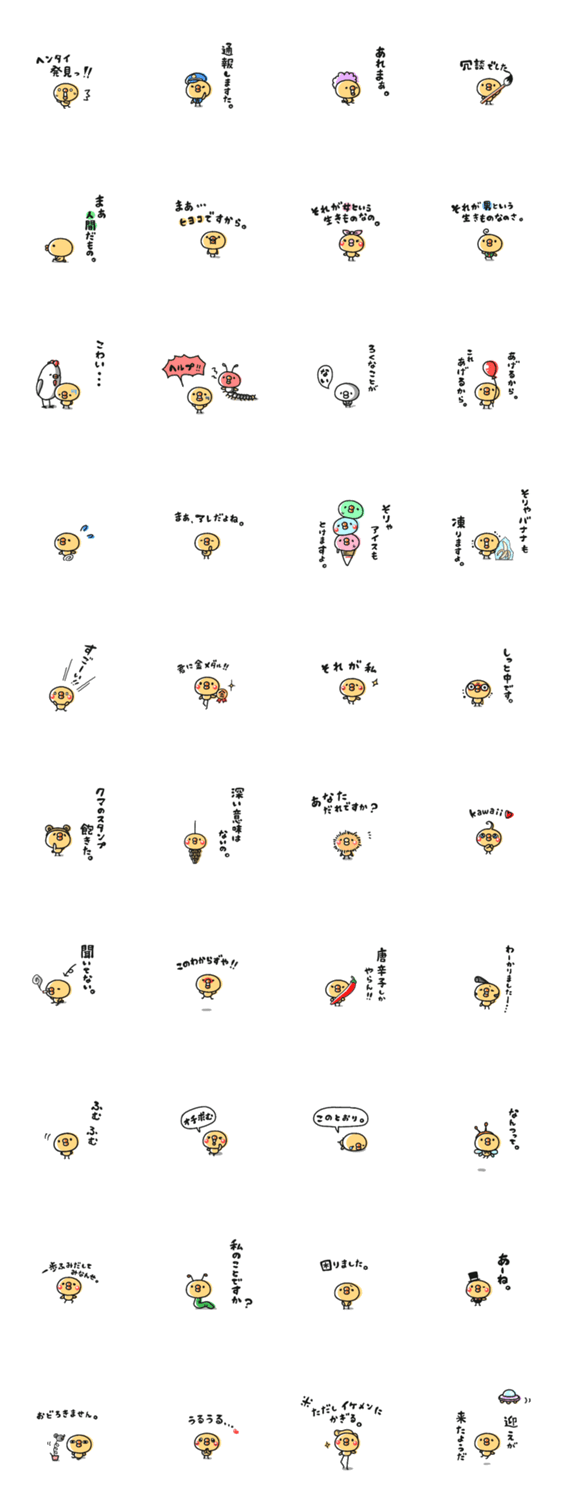 ミニサイズのかわいいひよこが一生懸命に喜怒哀楽を表現します。敬語からお友達向けに毒舌や冗談なども。こちらは第二弾です。※小さいスタンプです。