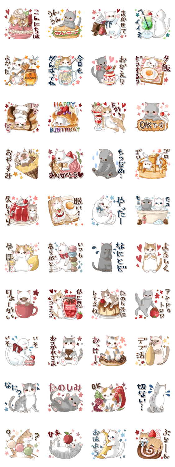 甘いスイーツと猫のスタンプです。 一息ついて癒されていただけると幸いです。