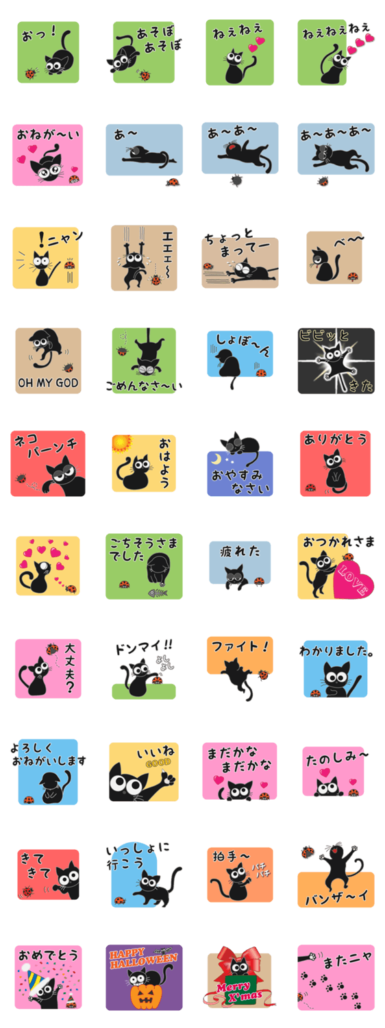 やんちゃなクロネコが愛敬たっぷりにメッセージを送ります。