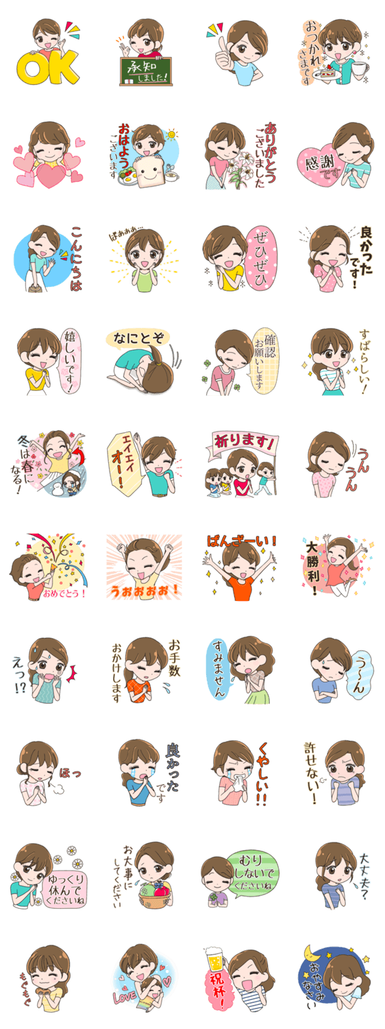 太陽のように明るく、そして健気に頑張る女性の皆さんに使っていただきたいスタンプです。華と舞う女性部、婦人部、女子部、全ての頑張る女性を応援しています。