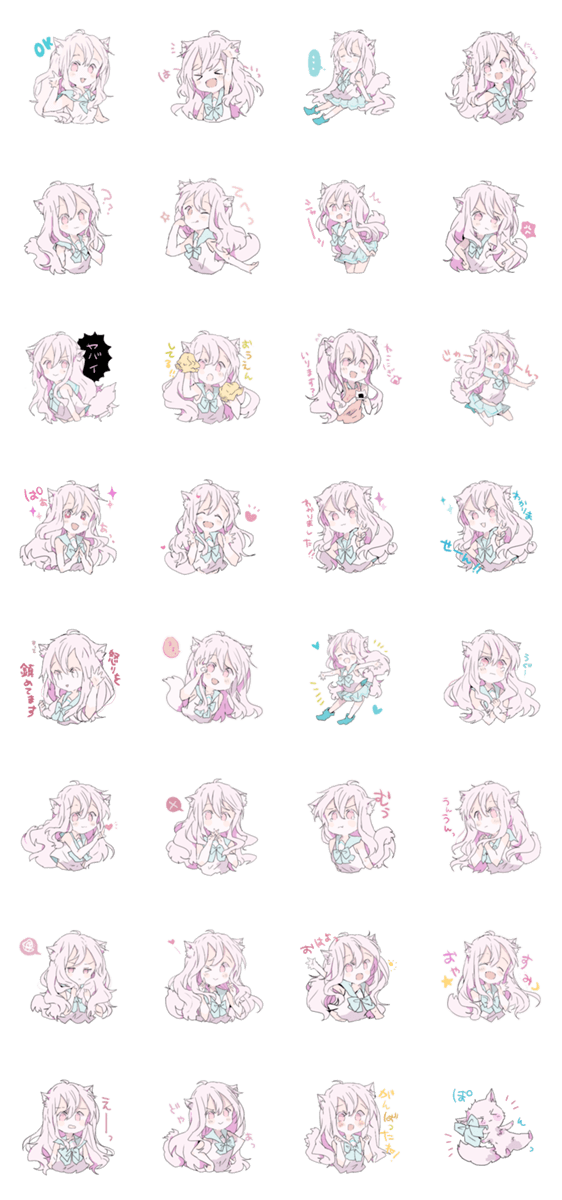 淡色ピンクのケモミミ女の子のスタンプ -LINEスタンプマニア