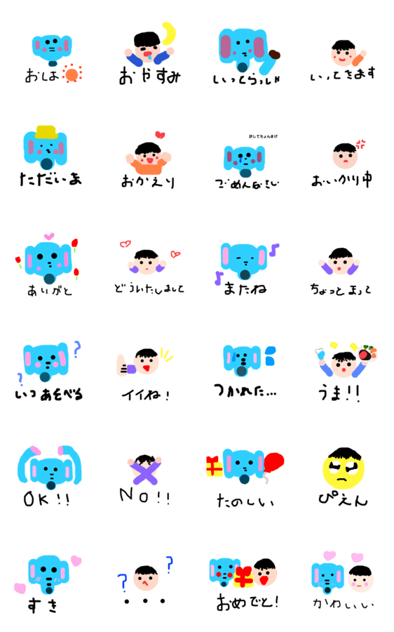 ゾウと子どもがのほほんしてるスタンプです。 可愛いゾウと子どもをご覧ください♪