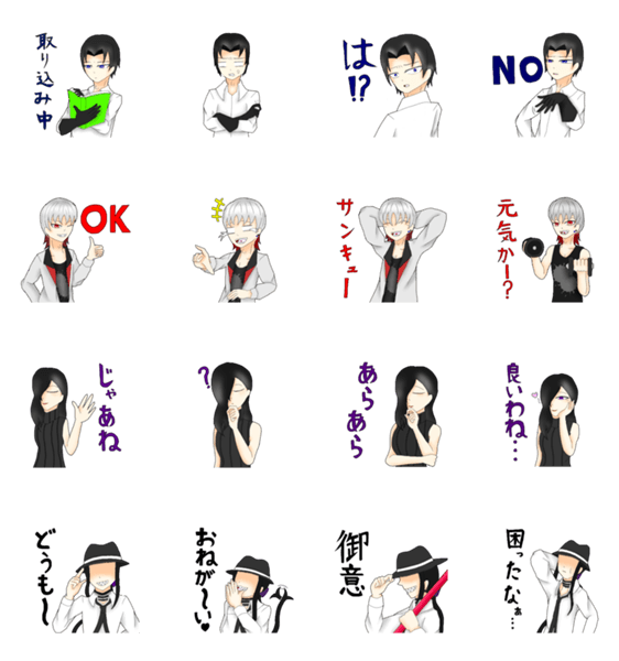 全く性格が合わない殺し屋3人組、凹凸飛び出しトリオと専属の運び屋1人のスタンプです