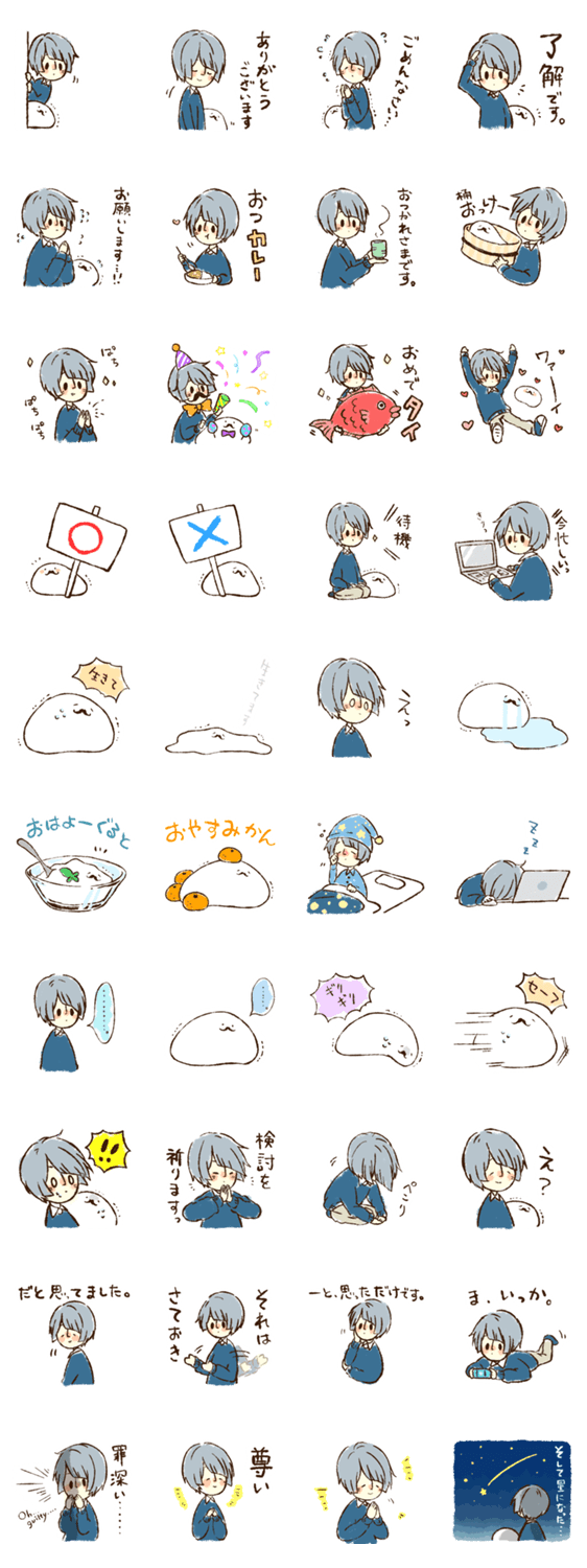 ぱっつんの男の子ロナくんともちもちしたパトじいちゃんのすたんぷ。