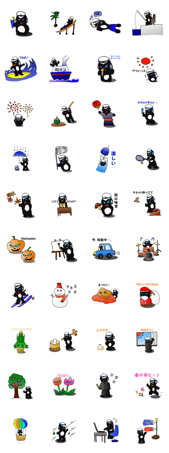 DJペンギンシリーズ2作目です。今回は、DJペンギンが四季のイベントをエンジョイしてます。季節毎に使えるスタンプです。
