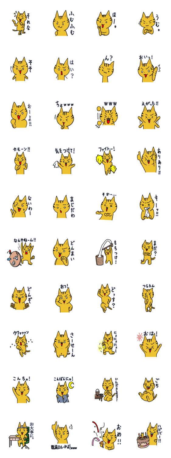やたら喋る猫、寅之助のスタンプ第二弾です。前回よりもパワーアップして日常会話に使えるあいづちなどのバリエーションが増えました!