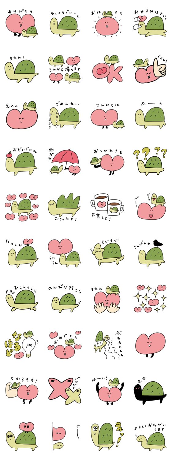 カメくんとハートちゃん【基本の言葉】 -LINEスタンプマニア