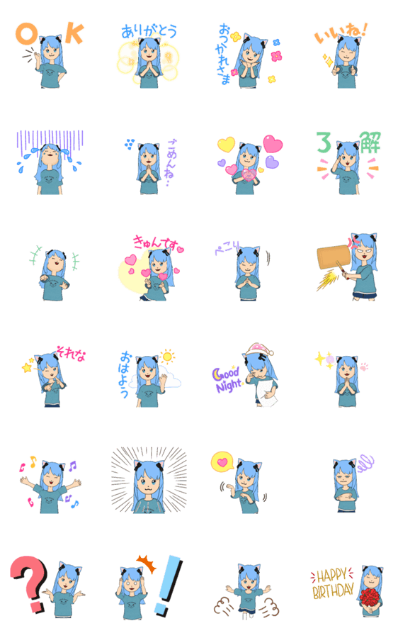 水色のかみの猫耳少女 -LINEスタンプマニア