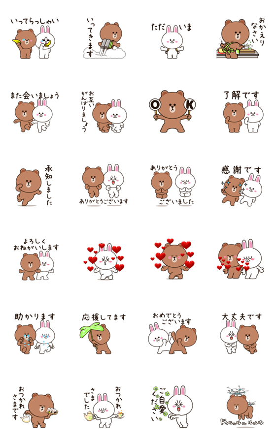 敬語多めの元気に動くブラウン&コニーのスタンプ第4弾です! ※BROWN & FRIENDS をみんなでつくろう!キャンペーン参加スタンプです