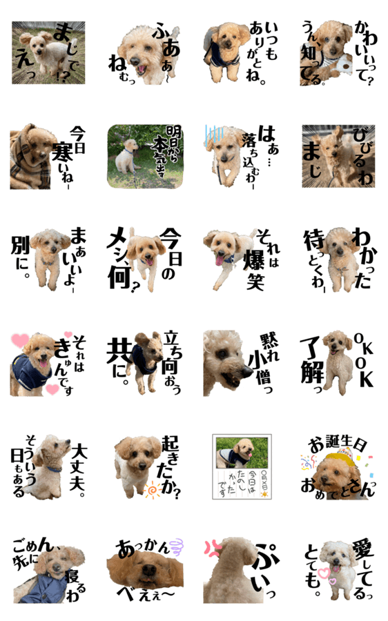 表情豊かなトイプードルのマカロのスタンプ。おじいちゃんです。