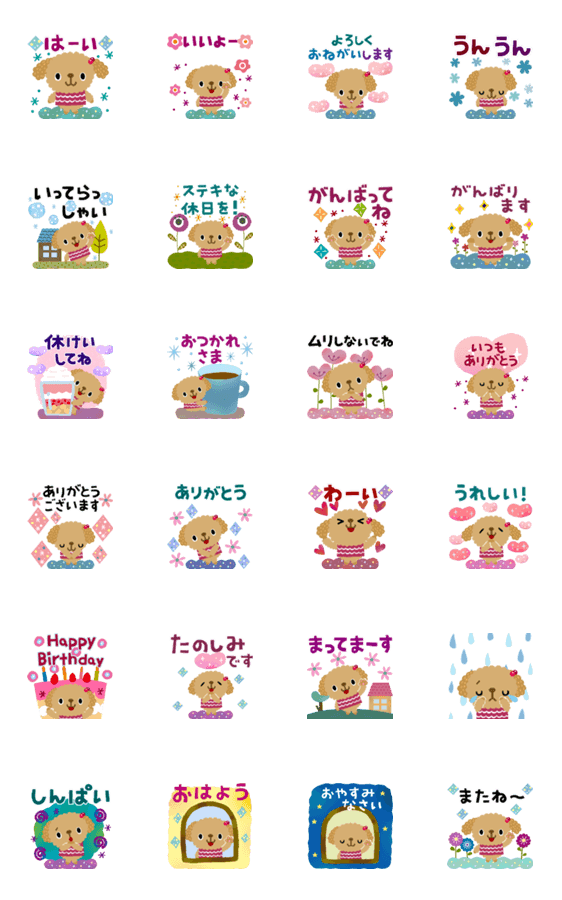 トイプーのカラフルスタンプです♥ 使いやすい言葉を集めたので1年中使えます♪