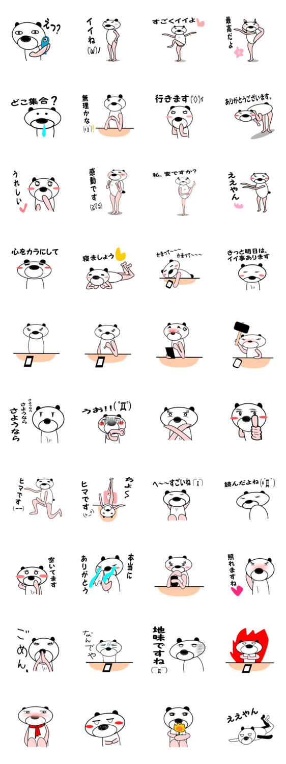 シュールなくまのコスプレを着ているクママさんがシュールな態勢で答えている姿を少しおもしろくしたスタンプです。学生さんや友達・ママさんにも使える会話スタンプです。