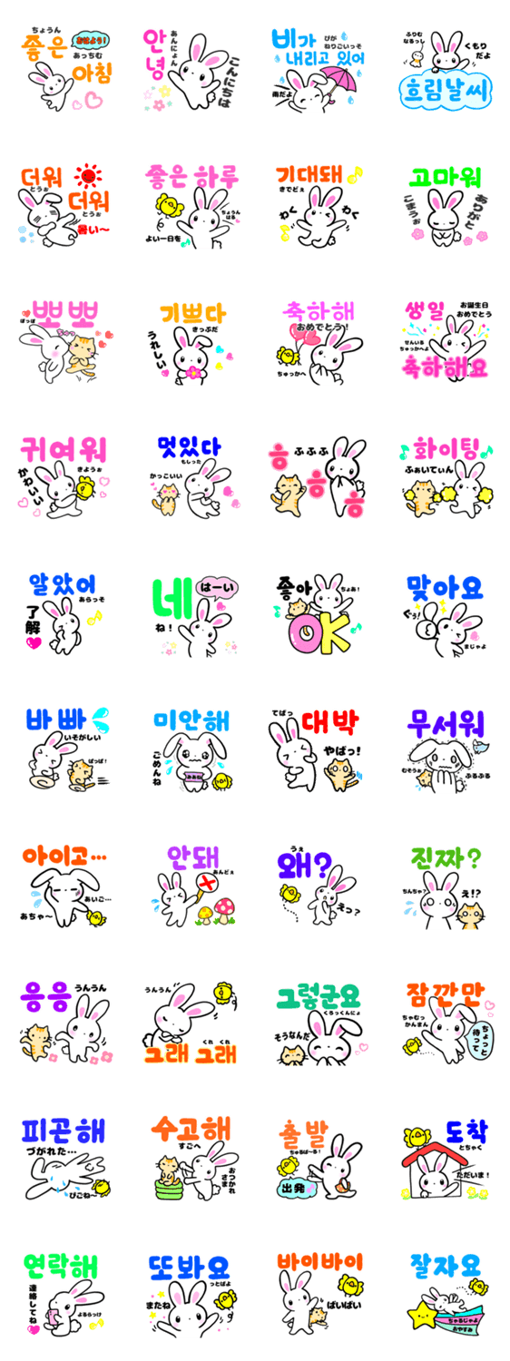 韓国語が大好きなあなたにお勧め☆でか文字の韓国語☆日本語訳付き☆かわいい白うさぎ登場☆時々でぶぴよやキジねこ登場☆毎日使えるよ