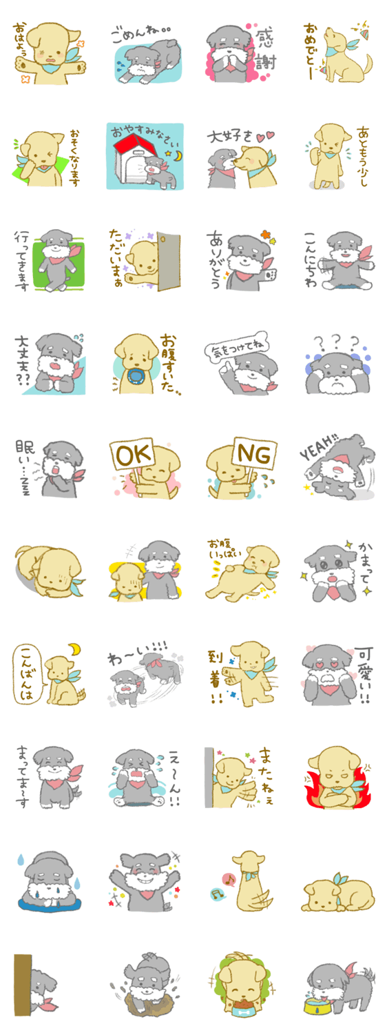 愛くるしいラブラドールレトリーバーとシュナウザーが日常で使用できるスタンプになりました。