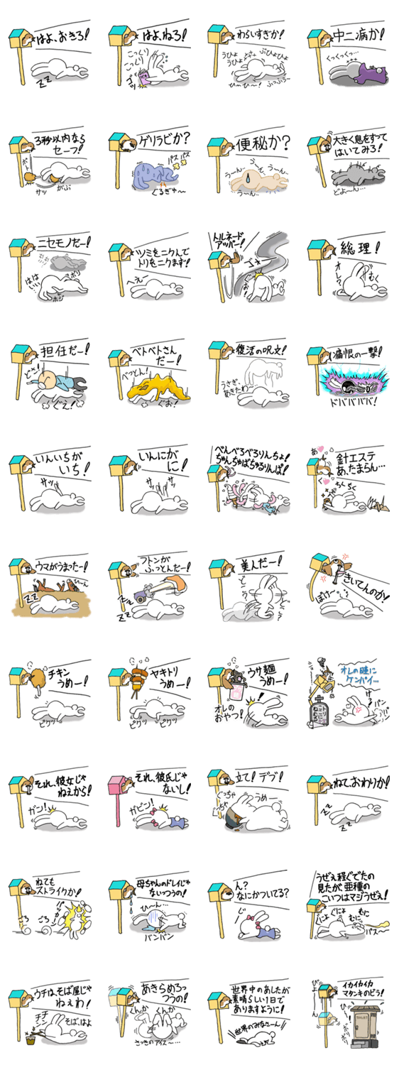 ぐでくさったウサギのスタンプです。言葉巧みにカツを入れる優しいトリに心を打たれます。