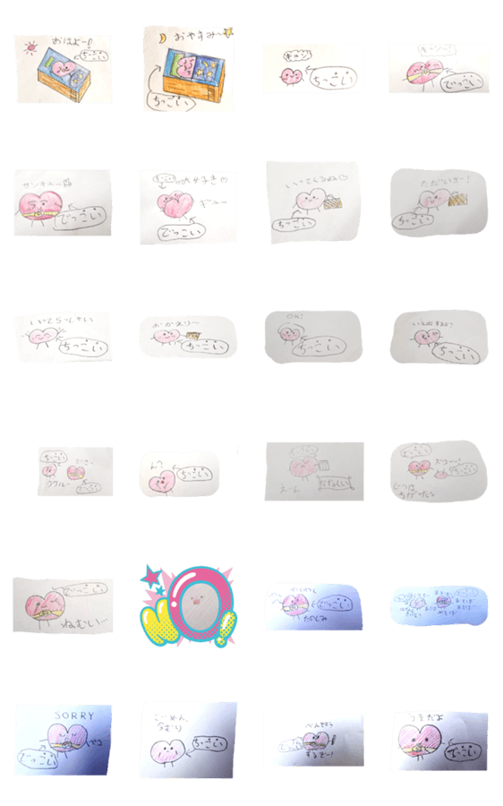 小学五年生が、手書きしました。ハートのキャラクター「ちっこい」と「でっこい」です。