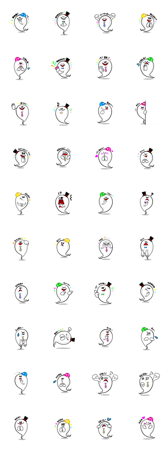 白くてとっても可愛いオバケのポーキーホーキー!日常会話に使いやすい言葉がたくさん!おばけスタンプで楽しくコミュニケーションをとりましょう!ハロウィンにもぜひ!