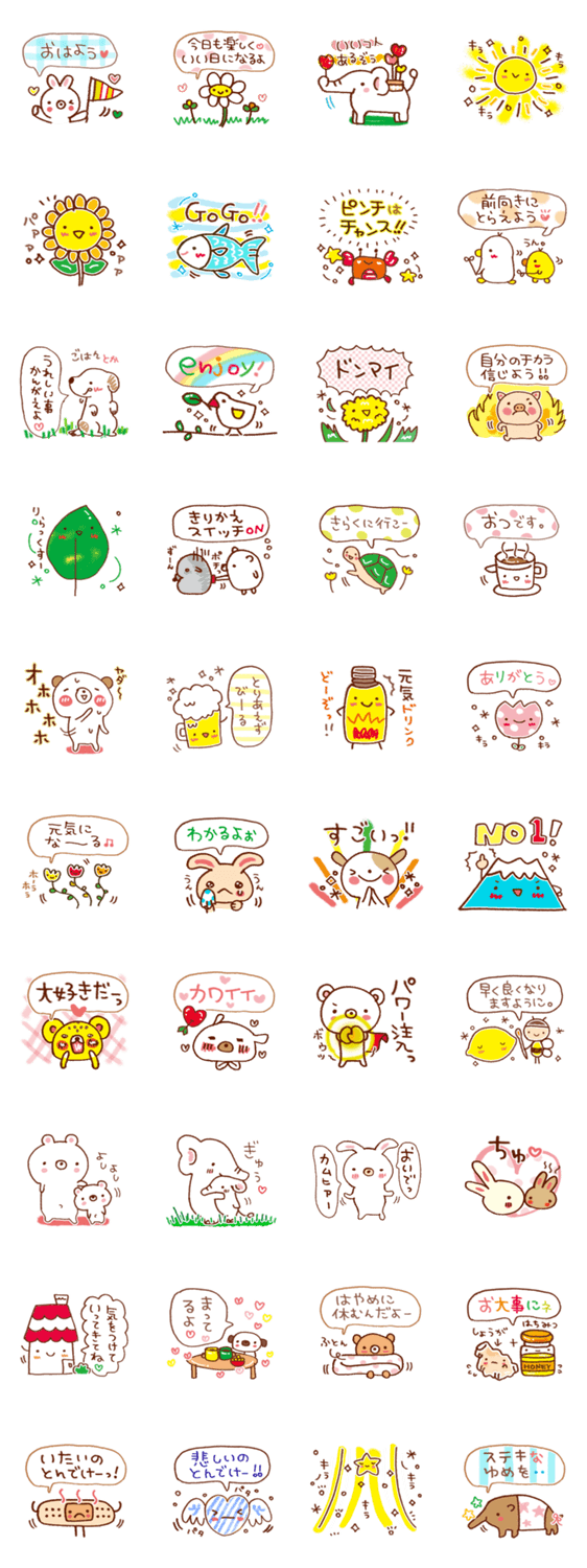 ほっこり優しい・あったかい気持ちになれる言葉をいっぱい詰めました。応援・励まし系スタンプです。