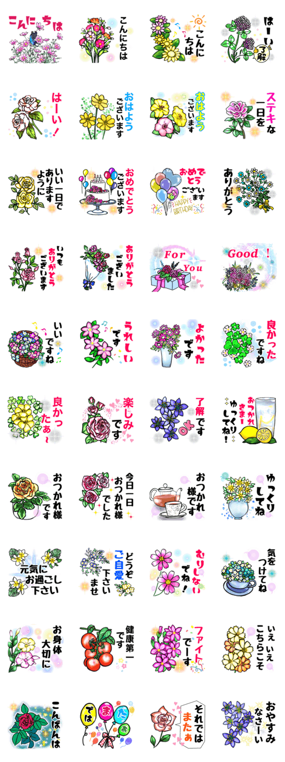 挨拶 気遣い 感謝の言葉等♪日常的に使いやすい言葉ばかりのお花のスタンプです♥️