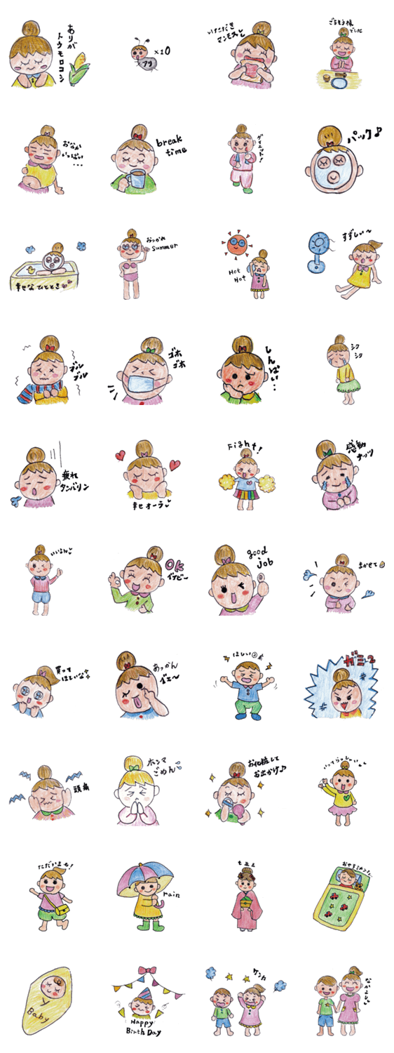 二人の子育て奮闘中〜!普段よく使う言葉をスタンプにしてみました!