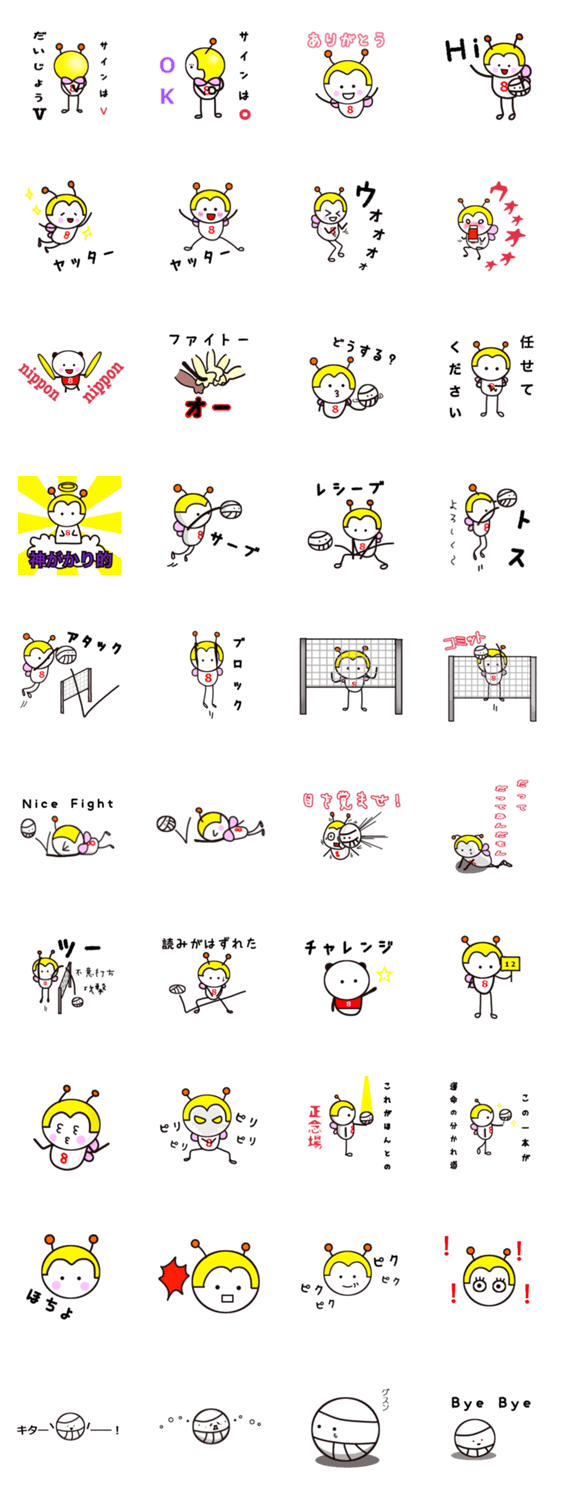 蜂のハッチのバレーボールスタンプです。観戦中に友人や家族、同僚と盛り上がれるスタンプです。