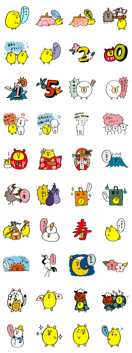 ゆる~く年末年始を迎えましょう。こたつ、ダルマ、除夜の鐘、初夢、福袋、初日の出、干支のひつじ、などなど年末年始のゆる~い気分のお供にどうぞ。