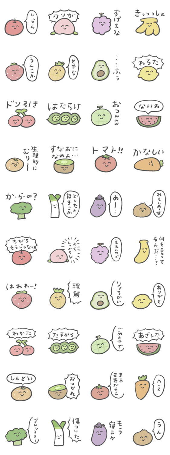 野菜と果物です。煽れます。日常の挨拶もあるよ。煽る/食べ物スタンプ/ネタ系/面白い系/毒舌/変なスタンプ/oroninet