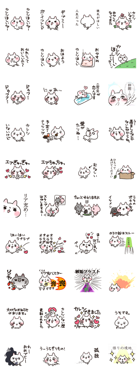 リア充に嫉妬するしつこいくらい彼氏がほしいモテない猫ちゃんのスタンプです