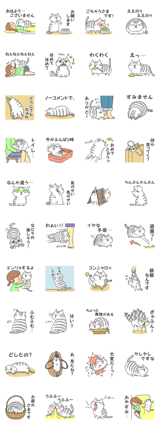 猫飼いあるある満載のスタンプです。アメショ風のポッチャリねこが気ままな仕草で楽しい会話をサポート!