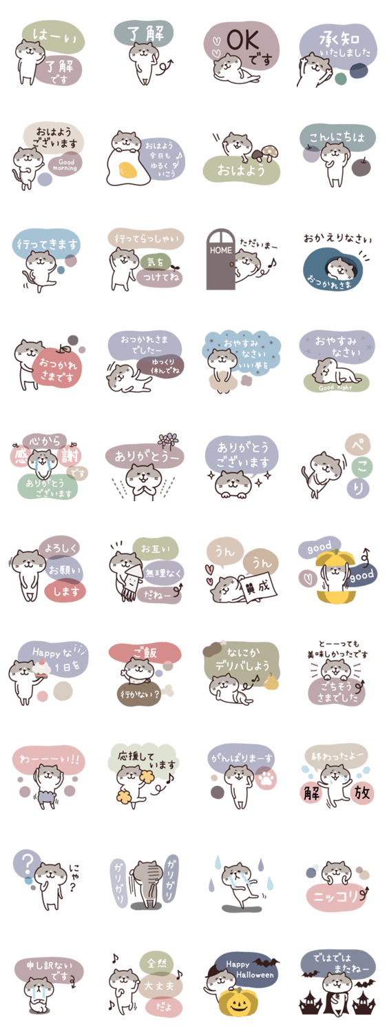 くすみカラー♡ねこのスタンプ ハロウィンに使える言葉も入っています♪
