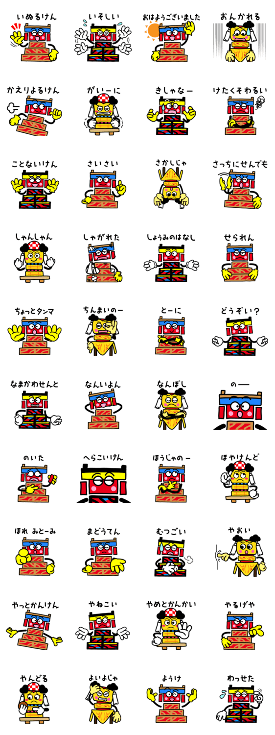 The second series of sticker featuring the characters of Saijo City Prefecture's proud festival "Danjiri", "Mikoshi" and "Taiko" speaking in the Saijo dialect.