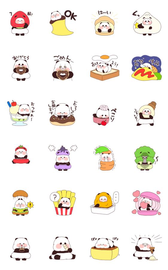 ゆるりんぱんだがたくさんもぐもぐしているスタンプです。
