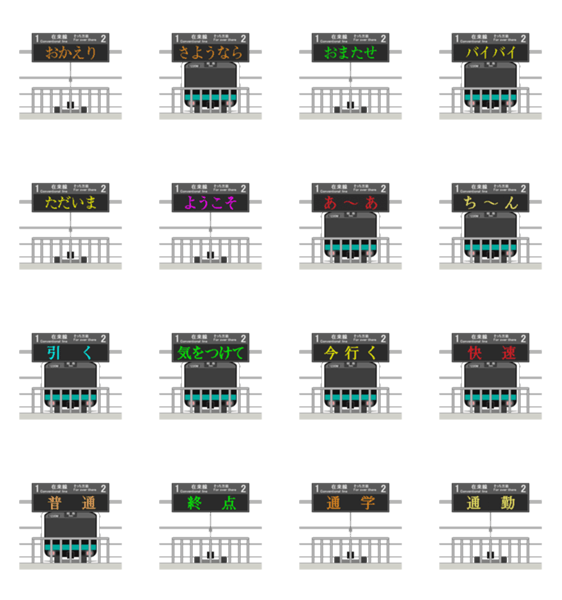 鉄道の駅に出入りする列車のアニメーションです。電光掲示板にメッセージを表示させます。