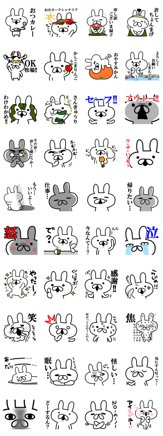 ゆるすぎるウサギさんのスタンプ第2弾!!ダジャレ入りの日常会話を入れてみたよ!!これを使えば家族や友達、彼氏、彼女との会話が盛り上がるかも…♪