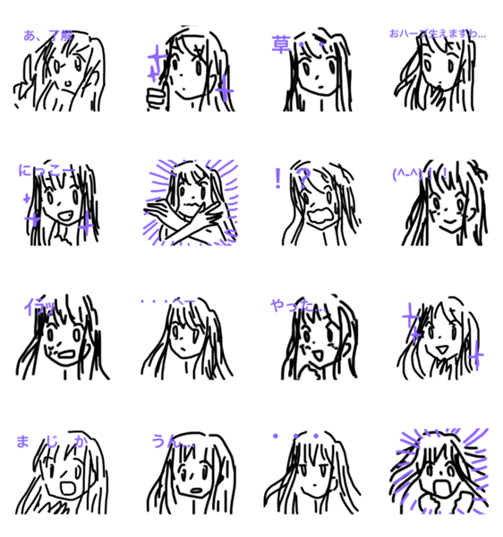 ワザとテキトーにつくった女の子のスタンプです。テキトーに買ってください・・・m(__)m