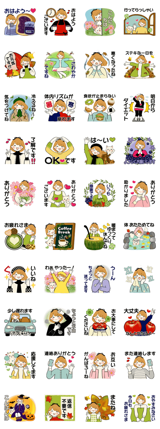 秋から冬にかけて楽しめる敬語入りのほっこりスタンプです。季節を感じる言葉ややさしい励まし言葉がいっぱい。笑顔と幸せを運んでください。