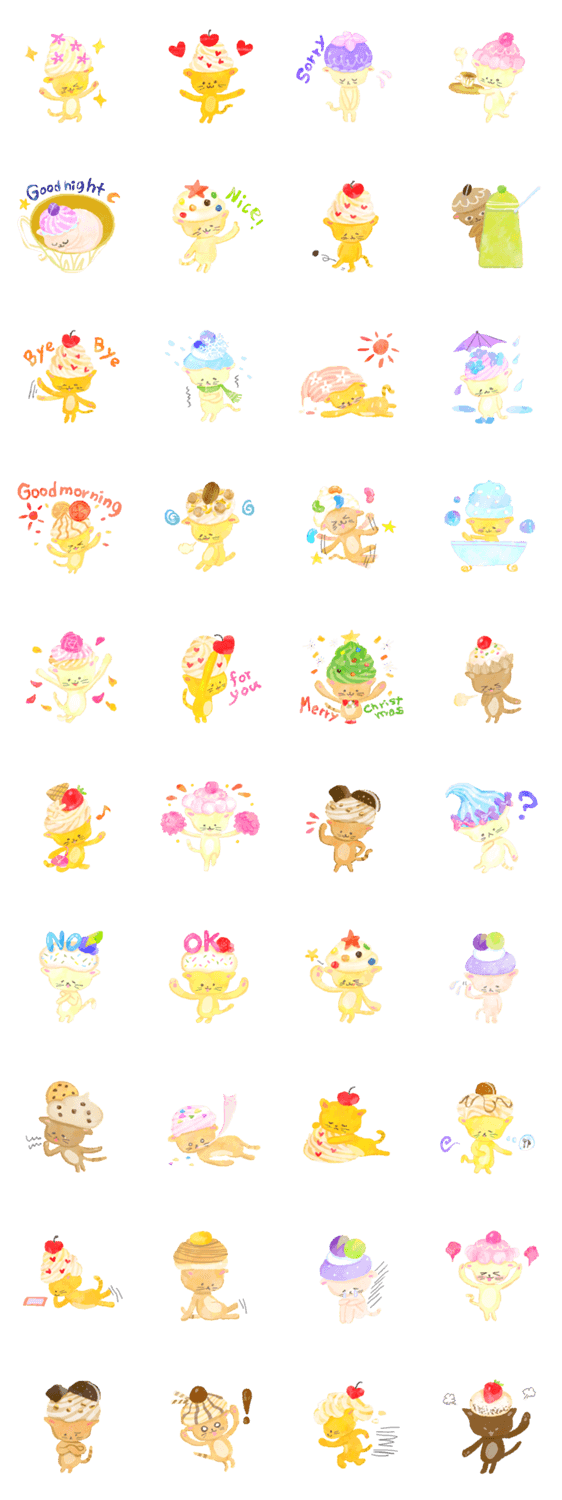 甘くて、可愛いお菓子の猫。いちご、チョコレート、さくらんぼ、オレンジ、ホイップ、グレープ、モンブラン、キャラメル、ジェリービーンズ。いろんなフレーバーの癒し系*
