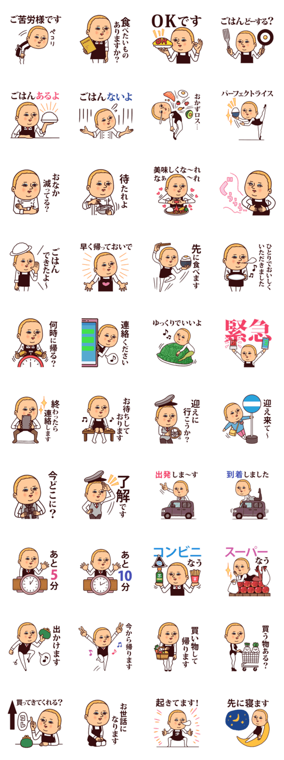 食事、買い物、送り迎え、報連相…事務的になりがちな家族や夫婦のやりとりを少しシュールに彩り、毎日そこそこ役に立つ、便利な家族連絡用LINEスタンプ。
