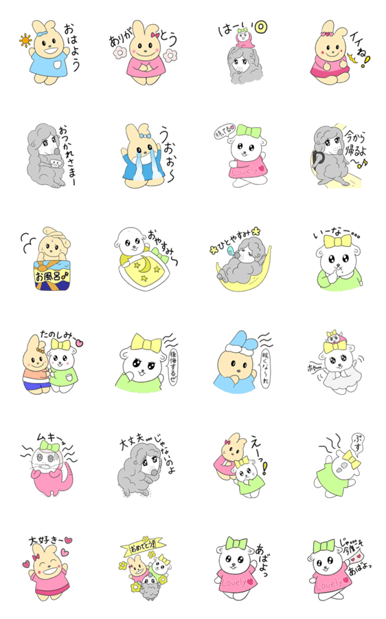 実はぬいぐるみのウサギとヒツジが織りなす日常スタンプです。気軽に使ってみてネ。