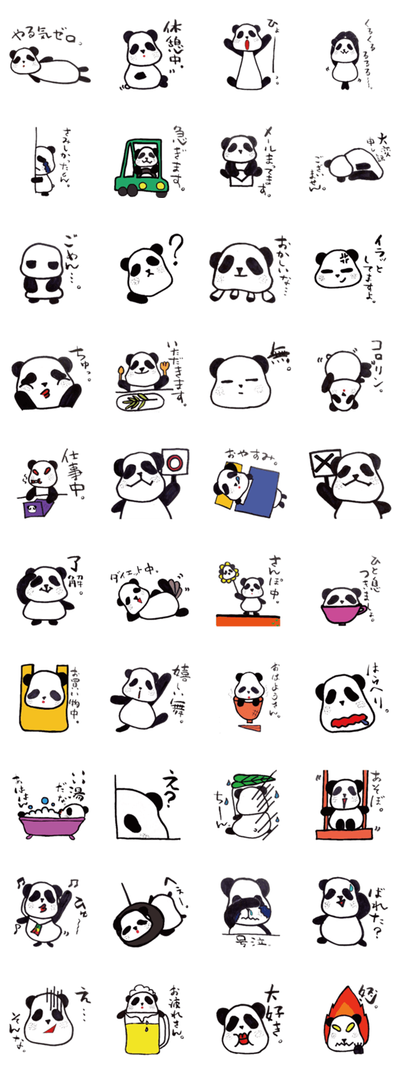 ゆる〜い筆文字とそばかすがチャームポイントのパンダが日常の会話を盛り上げてくれます。