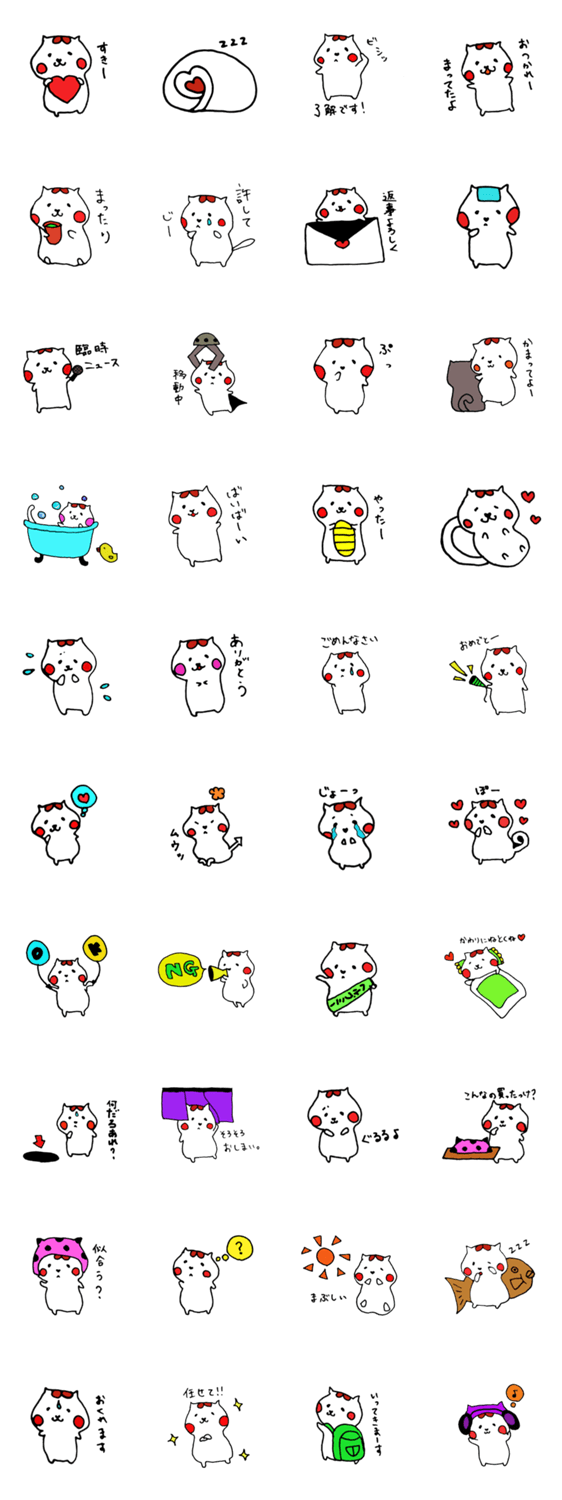あいねこは、ちょっと変わった白猫です。なぜなら、体の一部にハートマークが隠れている猫だからです。それは、幸運の猫とも呼ばれ、かわいらしいスタンプとなりました。