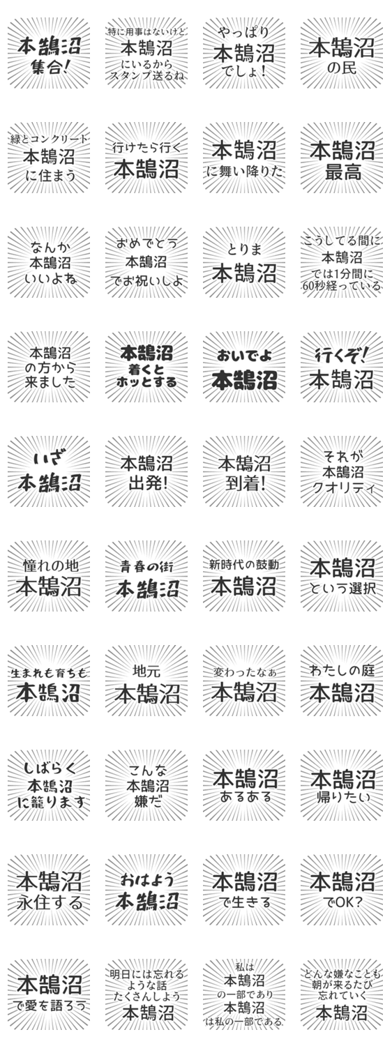 東京神奈川エリアを舞台にした漫画風セリフスタンプ。集中線で叫べ。地元の人にも憧れてる人にも。面白いのが見つかると嬉しい。集中線。地元愛。