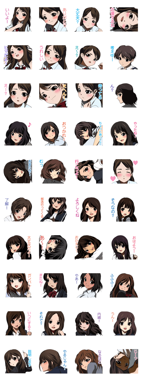 いろいろな日常シーンで使える!制服を着た女子高生の萌え系スタンプです。
