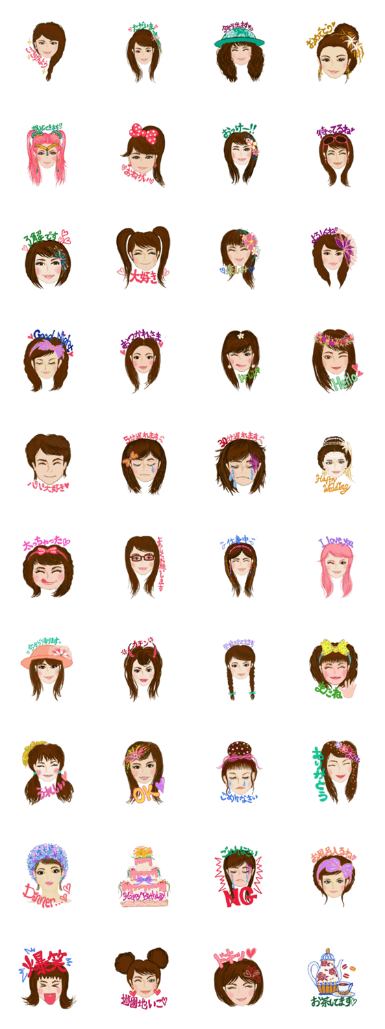 大人かわいい女子のスタンプです。色んな髪型や表情、メイクをお楽しみください。