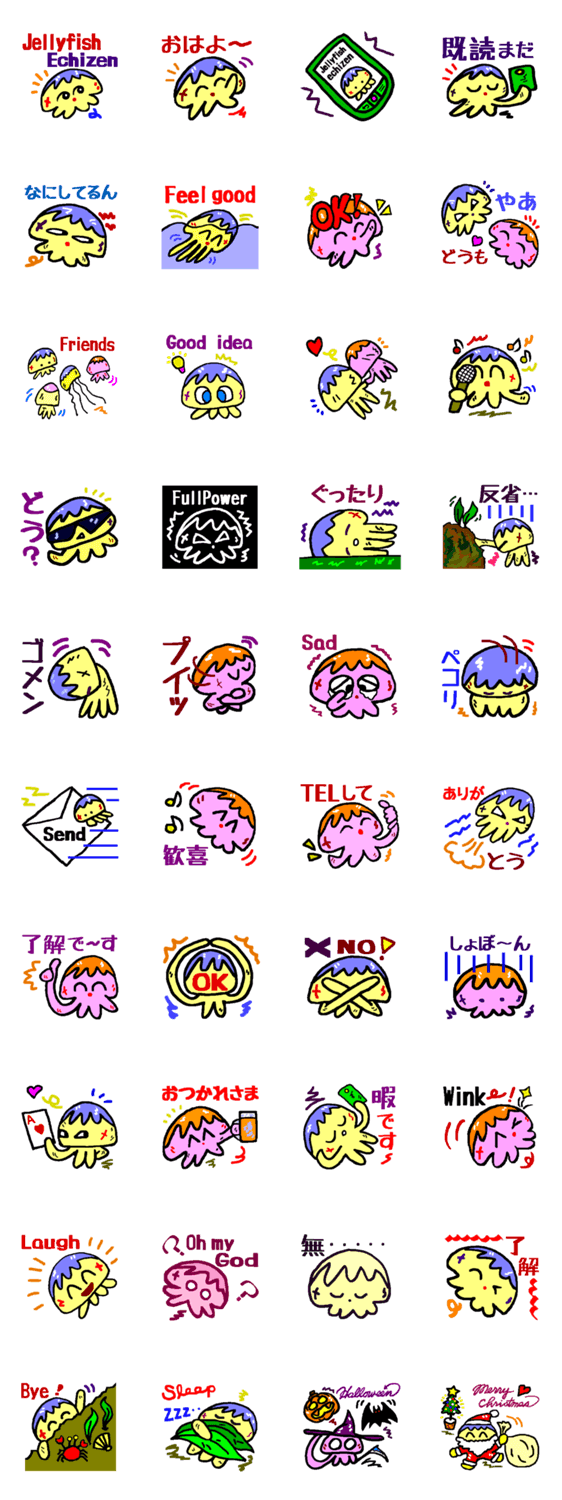 くらげのエチゼン君のスタンプです。エチゼンは名前です。