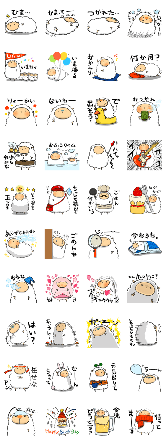 7cmの子羊もけおのスタンプ第1弾。食いしん坊でちょっとわがままな可愛い子羊を会話にぽちっと召喚。