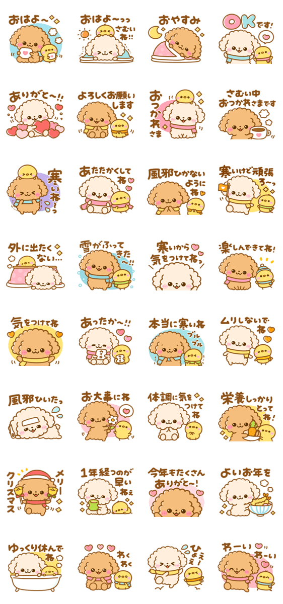 冬に可愛い♡トイプードルのあたたかカラフルカラーのスタンプです。