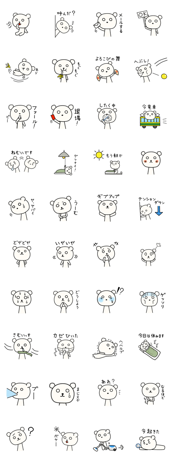 いつも力がぬけている謎な白クマ「クマタさん」のスタンプ。
