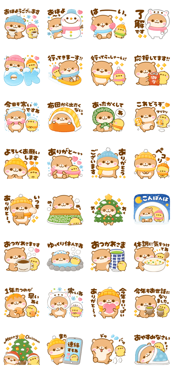 冬に役立つ言葉がいっぱい入ったかわうそのスタンプです。
