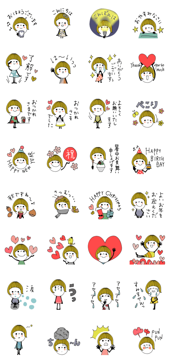 mottoの大人ぱっつんボブ♡年中 -LINEスタンプマニア